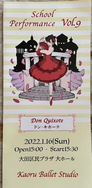 大田区の区民プラザで、TWチャンのバレエ教室の発表会があるというので、オッサンジジと一緒に出かけました。1月に入ってから、毎日のように感染者の増加が報道されていたので、バレエの発表会はどうなることか心配していたのですが・・・。本来ならバレエ教室の発表会は一年半毎に銀座のホールで開催されていたのです。でも、コロナ禍のこの節、バレエの発表会などは不要不急のイベントですからね。学校もリモート授業になっているのに、習い事の発表会など贅沢なことと考えなければならない状況なのです。寂しいことです。それでも、予定していたとおり、バレエの発表会は行われたのです。会場は、大田区の市民プラザ。調べてみると下丸子駅のすぐ近く。環状八号線からちょっと入った場所でした。私鉄沿線の住宅街にある小さな駅の近くだから、駐車場が心配。駐車場を確保するために、2時間も前に家を出ました。でも、行ってみたら下丸子駅のすぐ脇の道路には、駐車場がいっぱいあったのです。それも最大料金が800円とか! 安い!! 早く行き過ぎたからお茶でもと思って、駅裏のコメダ珈琲へ行ってみると大行列。仕方なく駅の周りの商店街をウロウロ。でも、喫茶店ひとつありません。あるのは美容室ばかり。我が保土ヶ谷駅近くの商店街にも気の利いたカフェひとつありません。美容院ばかりいっぱいある。さびれ商店街には美容院が出来ることになっているのかな?仕方なく、車の中で待つことにしました。一時間以上待って、やっと会場へ。TWチャンパパと神戸のおばあちゃまも到着しました。ママは早朝から会場へTWチャンを連れてきて、お化粧や衣装合わせなど大変だったらしい。太田市民プラザは収容人数300人ほどの小ぶりな会場でした。バレエ教室の発表会にはちょうどいいのかも。席は前から3番目でした。TWチャンはバレエを始めてから、今年で何年目かな? 昨年から本格的なトーシューズ履けるようになりました。トーシューズを履いて踊る姿を見るのは初めて。出し物はドンキホーテ。バレエと言えば、白鳥の湖とくるみ割り人形くらいしか知りません。ドンキホーテは「ラマンチャの男」を帝劇で見たことがあります。バレエでもドンキホーテっていうのがあるのですね。幕が揚がると、小さな子供たちが舞台上に頬づえを付いたポーズで登場しました。全員、ネコ耳をつけて、しっぽのある可愛い衣装を着ていました。会場から「かわいい!!!」の声、声、声!TWチャンも一番最初の舞台は、くるみ割り人形のネズミさんでした。ネズミの大きな耳をつけて、グレイの衣装で本当に可愛かった! 元気のよすぎるネズミさんで、倒れた木の兵隊さんを蹴飛ばしたりしていましたっけ! 蹴飛ばすのもバレエなのかと大笑いしたものでした。TWチャンは、今回は村むすめの役でした。オレンジ色の少し裾の長めの衣装で、髪をきりりと上げていたので、大人っぽい感じになっていました。ほっそりした首が若い娘らしく、美しかった! ちょっと昔は、いつも元気いっぱいで、やんちゃな子供だったのに、近頃ではすっかりエレガントな女性になってきています。家でも本ばかり読んでいるらしい。本好きなバアサンに似てきたのかな?写真もビデオを撮れないから、残念ながら映像はありません。多分、バレエ教室で編集したDVDを販売してくれるのでしょう。私たちの前の席には、プロのカメラマンがずっと映像を撮影していましたから。いつもなら、舞台が終わったあとロビーで衣装のまま一緒に写真を撮ったりするのですが、今回は密になるからそれも出来ませんでした。残念。でも、緊急事態宣言こそ出されていなかったけれど、コロナが蔓延している中、バレエの発表会を見に行かれたことだけでも、幸せに思わないとね。フレールアンクレールの花束いつものように、友人のお花屋さんに作ってもらったブーケをTWバレリーナに渡しました。次は、いつ我が家のバレリーナの晴れ姿を見られるでしょうか? 一年半あとには、コロナが終息しているのを願うばかりです。