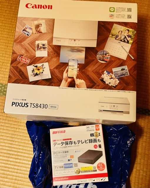 今まで何台プリンターを買ったでしょうか? 4台目、5台目? 覚えてないのですが。。インクが少なくなって来たので、新しいインク5色パックも買い足しました。インクを買ってしまってから、もしかしたら、年末だからプリンターが壊れるかも・・・、って悪い予感が・・・。でも一色でも不足したら年賀状は刷れないわけだから、高いインクも買わざるを得ないのです。買ったインクはもちろん純正。純正じゃない安いインクを使っていて壊れたら、修理費の保証はないのです。先週中に姉に頼まれていた年賀状70枚の印刷を完了してホッとしたのもつかのま・・・。今週はじめに我が家の年賀状をデザインして、試し刷りをしていたら、いきなり、エラーが出てプリンターが止ってしまった。プリンターからは、ガシャガシャとイヤな音が・・・。そして、エラー6004と表示されました。エラー6004ってなに? 久々マニュアル本を引っ張り出して確認してみた。エラーの6000番台は排紙の不具合となっていました。対処方法は、「電源を切る、コンセントからコードを抜いて、しばらくしてから電源を入れてみてください」となっていた。とにかく電源を切り、コンセントから抜いてみた。果たしてプリンター様のご機嫌は治るでしょうか? そして、しばらくしてからヒヤヒヤしながら、再トライ。 電源を入れたあと、印刷開始前には、「無事年賀状が刷り終わりますように、よろしくお願いします」とお祈りも忘れずに・・・。何事も最後は神さまにお祈りするしかありません。するとプリンター神様にお願いしただけあって、無事印刷が始まり、何とか年賀状は刷り終わりました。宛名も全部刷り終わり、ホッひと息。やっぱりお祈りが一番大事なのだ。今使っているプリンターは、一度不具合があって修理に出したことがあります。2年ほど前だったかな? 5年保証に入っていたから、修理費はタダ。でも、5年保証といっても補償額は年々下がっていくのです。修理に出してみて、減価償却分については保証してもらえないことが分かりました。今回また修理に出したら、多分、修理費の足が出た分を支払うことになりそう・・・。何とかプリンター様の機嫌が治ってよかった!と思っていたのが大間違い。今朝、頼まれていた友人の油絵の絵はがきをプリントしてみると・・・。刷り上がりに縦線の様なムラが出てしまう。我が家の年賀状をプリントした時は、印刷ムラなどなかったのです。ヘッドが汚れていると思ったから、ヘッドクリーニングをした。でも、直らない、仕方なく強力クリーニングをしてみた。強力ヘッドクリーニングはインクを沢山消耗するから、なるべくやりたくないのですが、そんなことを言っている場合じゃない。でも、強力ヘッドクリーニングをしても、印刷ムラは直りませんでした。やっぱり暮れにプリンターが壊れるというのは、迷信ではないのです。年末にプリンターが壊れるようにプログラムされているんじゃないのか? と邪推する。このまま印刷ムラが直らなければ、買い換えた方がいいのかもと・・・・。プリンターは高くても3万くらい出せば買えるから、何年か前には、持っていたプリンターを修理に出している間に、新品を買ったこともあります。修理に出したプリンターも戻ってきたので、2台プリンターを持っていたこともある。昔みたいに、写真も撮らないし、写真をプリントすることも少なくなっているのに、プリンターにこだわるのもバカみたいかも知れないのですが・・・。キャノンプリンターTS8430と4K対応ハードディスクコロナ禍の影響で、家電の在庫が不足しているのは、家電店で年末なのにプリンターが山積みになっていないことからも推測出来ます。コロン禍の昨今、東南アジアからの部品が届かないので、色々な家電が生産出来なくなって品不足になっているらしい。もし、プリンターがお店になかったら、入荷するまでプリンターなしでやっていくしかありません。よく考えれば、プリンターなどは生活必需品じゃあないんだけどね。でも、やっぱりプリンターが欲しい。そこで、近頃近くのスーパーの一階に開店した家電店に行ってみました。とにかく、プリンターの在庫を確認するため。買うか、買うまいかは見てから決めようということで・・・。でっ、在庫があったプリンターを買ってしまった! 「あと2台ですですよ」という言葉にだまされたということか! でも、同じ型のバージョンアップタイプだったから、インクは今までのと同じ。インクも買ったばかりだったから、インク代6000円余が無駄にならなくてよかった! 調子にのって安売りしていた4K対応の外付けハードディスクも買ってしまった。普段、チマチマ暮らしているバアサンもやるときにはやるのだ!無料で当日届けてくれるサービスで、夕食時に無事、新しいプリンターが届きました。2,3日前、プールの友達から 「お茶をこぼして、パソコンが壊れてた!」 と聞いたとき、同情めかして 「思い切っ