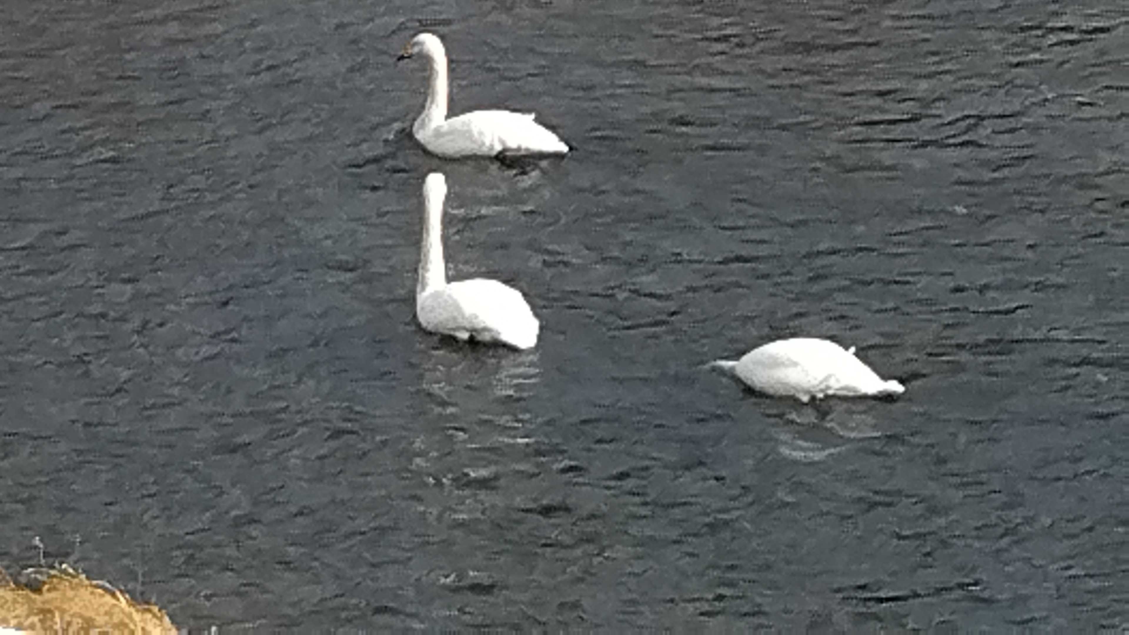 代わりに中津川でのんびりしてるハクチョウを眺める