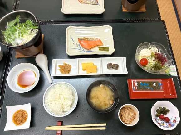2泊の旅はあっという間。旅館の朝食を頂いたら、あとは帰路ですね。もちろん朝から温泉は…