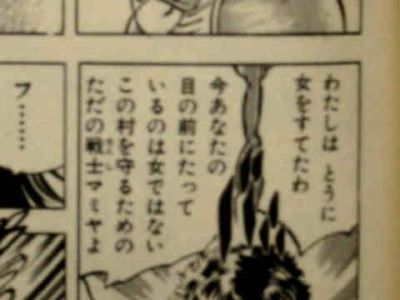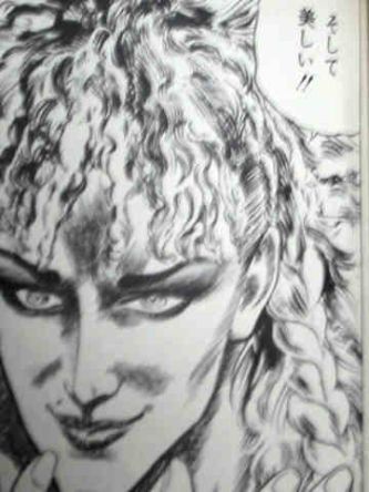 本日の彼との会話の中で。彼に何気なく聞いてみた。「私、色気ある?」彼「・・・・・・。」って、無言?無言なわけー??そのやり取りの中でいくつかの問題点が浮上。その1 気合を入れる言葉ギャルなら「えいっ」とかだろうと彼。え?「ふんっ」とか「ぷふ~」とか、「はぁ~」とかじゃ?その2 ブローをしたことがない私ドライヤーで髪を乾かす習慣すらないって・・・その3 ツッコミに対する返答私「そっか。髪型を前髪下ろしてロングにすればとりあえず♪」彼「修羅の国の名もなき修羅になるのか?」※注私「あんな厚いぱっつん前髪に三つ編みの変なアタマにしない --#」・・・って北斗の拳のキャラの誰を指しているのか、すぐに解るってマズイ?その他、色気より食い気だろと多々指摘の後。「ウィグル獄長からまず色気を出世させるには、ユダからはじめろ!初心者はそこからだっ!!」ま、マジですか・・・?確かに私より自分に手間かけてそーだ。おっさん道から色気をつけて今年はどこまでギャルもしくは乙女になれるか?・・・道は遠いなぁ。※注 名もなき修羅とは一体どんなキャラだ?こんなの。って前髪下ろすって言っても、こんな分厚いぱっつん前髪はやだって(--)まぁ好みの見解の問題ですが・・・確かにロングヘア。三つ編みだけど・・・この気合の入れ方はギャル感ないって(--)※キャラは男ですうーん。なんかこの顔、バーゲン会場の中継に映ってそうなカオに見えたのは私だけか?