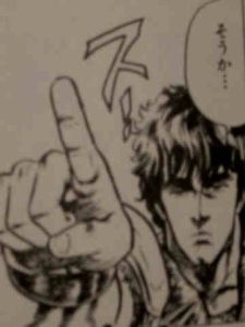 日記をアップしようにも、そんなに毎日ネタが豊富にあるわけではない。そこで彼に「なんかネタない~?」と聞いても、「・・・うーん」といい回答はなし。ふと疑問に思っていたことを彼にぶつけてみました。北斗の拳にはこんな秘孔を突くシーンがあります。どんな秘孔か?と、突かれた人がヒミツを暴露しなければ・・・痛そうなコトになります(--)そこで彼に質問!「北斗の拳に出てきた秘密暴露しなきゃいたーい!って秘孔あったけど、私に突いたらナニ聞きたい??」彼、思案中。考えてます。考えてます!ま、まさか今まで付き合った人の数とか?えぇー??と、一人で心の中で盛り上がっていたら。彼の回答。「体脂肪。」・・・絶対に口を割りそうにないからだとか(--)た、確かに?しばらく笑いすぎて動けなくなったことは言うまでもありません。口を割りたくないヒミツってないものですか?