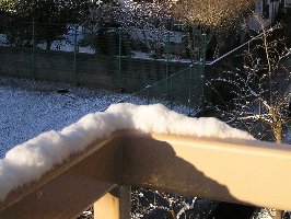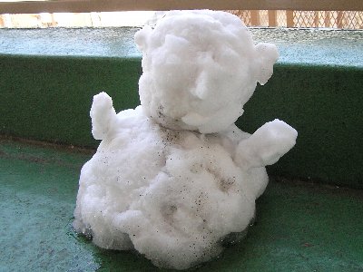 昨日の雪、こちらでは観測史上2番目の積雪だったそうです。9センチ。北側の日陰は、今日夕方になってもまだ雪が残ってる・・・私の車の上も、こんもりと・・・積もった雪が踏み固められたり、解けた雪が夜また凍ったりして、昨日より危ないかも・・・昨日、夫と子供たちが作った雪だるま。 耳もついてるし、鼻もへんに高いし・・・不気味。今朝とった写真。今見たら、さすがに傾いて雪の塊になってましたが。今朝は、友人の家に用事があって、自転車で川沿いを走ってみたら、いつもはカモがたくさん泳いでいるのに、ぜーんぶ川辺で丸まってました。一羽も、泳いでないでやんの。さすがのカモも、寒いのか。