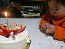 第二子の為に自宅安静と言われても、明日は兄ちゃんになるダイゴローの誕生日!!!と、昨日から買い物に行ったり、ケーキの予約に行ったり、料理の準備をしたりそして今日。ダイゴローのお誕生日会は、パエリアとピーマンの肉詰め&ハンバーグとポークビーンズを並べる事が出来ましたダイゴローには少し多いかな…と思っていたけど完食ミルクを飲み終えると、早速ケーキに手が伸びました。^^;18cmのケーキ。上のイチゴは、半分ダイゴローのおなかへ…そして手の届く場所のイチゴがなくなると、スポンジ部分もわしづかみで食べ始めました。ワイルドォ~お誕生日だし、思いっきり楽しみなさいと初めは大きな心をもっていた私達も、自分の分が危なげになると切り分けて自分達の分を確保(笑)ダイゴロー君、遊びながら18cmのホールケーキ4分の1近くも食べてしまいました。^^;また晩に吐いちゃうかなぁ…って心配したけど大丈夫でした。1歳のダイゴローは一人立っちが出来て、最近は物を持ったまま立てるようになりました。もう少しで1歩が出そうです。見ているこっちに力が入ります!遊びはコチョコチョが大好きです。コチョコチョの格好で私達が構えると、もう笑い出します。こっちも本気で遊んでしまいます。いないいないばぁを自分で物陰に隠れてしてくれるようになりました。バイバイもしてくれるようになりました。凄く気まぐれですが…^^;朝「おはよう」と言うと、同じようなイントネーションの言葉が返ってくるようになりました。まだはっきりした言葉はないですけどね。あっまんまやん~まっは言います。食欲万歳ヽ(●´ε`●)ノ子供っておもしろい(  ̄ー ̄)*キラン誕生日プレゼントを、私の母にファーストシューズをリクエストしました。初めての靴はプレゼントされるといいことがあるんだって^^その靴をはいてお散歩出来るようになるのはいつだろうねぇ~楽しみ♪私の妹夫婦からは、ぺビープーのいすがプレゼントされました。ちょうどご飯の時のいすが欲しかったので凄くうれしった。ありがとうもっちゃん&mokoちゃんそして、ダイゴロー♪お誕生日おめでとう!!! 強くて元気なお兄ちゃんになってね☆