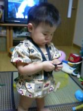 ダイゴローも1歳5ヶ月になりました。なかなかお兄ちゃん(子供)らしくなってきました。最近のダイゴローは、オムツ(パンツ型です)やズボンを脱ぎ・着する時に、自分で足を上げてくれるようになりました。「ダイちゃんパンツ換えようか」と言うと、オムツ入れからオムツを持ってきてくれるようになりました。トイレトレはまだ全く開始していません(^▽^;)ママの体調&精神状態(妊娠中はイライラしやすいし…)と、ダイゴローのおしっこ間隔がまだ短いようだから今年の夏はあきらめました。来年の春で2歳。春からトイレトレ始めたっていいやんねぇ~言葉はほとんど出ませんが、ごっこ遊びが好きです。ままごとセットと、錆びたホーローのキッチン道具をダイゴローにプレゼント。私の料理する姿を見ているのか、ままごとの野菜を切って、ホーローの入れ物に入れ、まぜまぜ。「あぁ~ん(((ノ゜△゜)ノ」と言って、お砂場セットのスコップ(砂場デビューはまだです^^)で口に運んでくれます。NHKの『いないいないばぁ』や『おかあさんといっしょ』を見て、一緒に体操をするようになりました。今は『ぐるぐるどっか~ん』の♪ぐるぐるぅ~♪がお気に入りです自分の思うようにいかない時、意思が通じない時は涙を流して大泣きします。結構気が強いかも(笑)…私似だ (´~`ヾ) ポリポリ・・・でも笑顔のかわいい息子に育っています。こないだは、夜中に夢を見て声を出してケラケラ笑っていました。幸せなのかな?そうだったらうれしいな