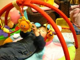 おちゃめなダイゴロー兄ちゃんと、ほっぺたプルプルの月ちゃんです(* ^ー゜) 2ヶ月に入って、メリーやジムなんかの、上で物が揺れているのをジッと見てキャッ(^^*))((*^^)キャッとよろこんでいますその間に少し家事が出来ます。でもダイゴロー兄ちゃんの『月ちゃんのお世話ごっこ』のせいで、月ちゃんのご機嫌をそこねる事が多いのですが 遊びは、うつ伏せにしてバタバタしたり、鏡のピカピカを見て笑ったり、みんなのお顔を見てにこにこすることです。新年になった頃から、ママが1番苦手だった3~6時くらいの時間帯の授乳がなくなりました。とても楽になりました。…って言ってたら、また夜泣きの時期がやってきたりして今のところ、1時2時くらいのミルクが最終で、朝は9時10時くらいまで寝てくれます。ずっとこんなやり易い子のままだったらいいのになぁちなみに月ちゃんと実家にいる頃は深夜2時~8時くらいまで泣きっ放しでとっても苦労した子でした。今思えば、実家にいた頃がイライラMAXだったかな?そのことを知っている私の両親は、私達に会うたび「月ちゃんもう夜泣きはせんか??」と気にしてくれます。でもそんな時期を知らない人達は「やり易い子やな~楽やろ」といいます。ぜんまいキコキコしちゃうぞ!って感じです(笑)月ちゃんもダイゴローも、お客さんが来たり、お出かけするとミルクも忘れて眠ったままやから・・・人に言われるとピキッっとくるけど、実際ウチの子達は『やり易い子』なのかも知れません