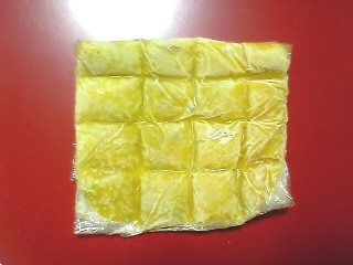 かぼちゃをラップに広げて、お箸で1回分に区切り、冷凍保存。