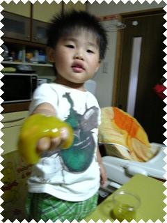 今年の夏は、すいかの消費量が上昇しております。ダイゴロくんが大好きなんですよびっくりするくらい食べます。おなかの調子はよさそうだから大丈夫なんやろうか写真は プールの後にスイカのおやつ デス最近のダイゴロさんのお気に入り遊びダイソーで買ったパズル(!?)を繋げ、電王(ダイゴロー語では、い~じゃん♪)、ゲキレンジャー(ジャー)、恐竜(きょーうー)達を乗せてしゅっぱーつ!!!い~じゃん♪い~じゃん♪い~じゃ~ん♪と歌いながら引張って遊んでいるけど、みんなデンライナー(!?)から転げ落ちて行ってしまうのよねでも自分で楽しい遊びを発見してえらいぞ!!近々電王の映画見に行きま~す