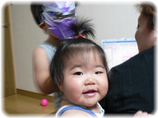 健診の前日、やっぱり月ちゃんの寝つきは悪かったそしてダイゴロも…しかし朝は「もうちょっと寝れたのにぃ…」な時間にダイゴロのオシッコ報告で起こされ、後に続いてパパも、寝ている月ちゃんを抱っこして下に降りてきた。そして教育テレビを早速つけるダイゴロ。朝ご飯の用意をし、私が少し落ち着いた頃には、いないいないばぁ!が始まっていました。月ちゃんがリズムに合わせて体を揺らす。今の特にお気に入りは、おかあさんといっしょの『ぱわわっぷ体操』と恐竜キングのED、ひろみちお兄さんの『恐竜マッスル』らしい月ちゃん体操のお兄さん好きかい?パパが出勤してすぐの頃、ダイゴロも月ちゃんも再び寝てしまった…そして私もお昼前に目を覚ました。健診は1時~1時30分まで。子供達に軽く食べさせ、お出かけ着に着替え、私の変身そこで既に12時30を過ぎていたのに…ダイゴロくんウンチ失敗でまた出遅れる今日は少し離れた、旧隣町の保健センターまで行かなくては!!パパの実家へダイゴロを預ける予定だったけど、ダイゴロも連れて行く事に急遽変更今回は兄弟を連れて来ているのは私だけだった。でもダイゴロもだいぶん落ち着いてきたみたい。あまり迷惑をかける事も、気苦労することもなかった月ちゃんの6ヶ月健診の時は、連れて行って大変だったのよね。。。ダイゴロお兄ちゃんになったのねそして月ちゃんの成長。体重8200g 身長70.0cm 順調デス今回為になった栄養士サンのお話し。ご飯が好き食べるのが好きで、ミルクを飲まなくなった子はカルシウムを摂る為にヨーグルト・チーズを納豆はそのままよりも、ひきわり納豆・納豆を刻んだものを食べさせた方が消化吸収がよい。免疫力UPに効果的なポリフェノール。そしてポリフェノールいっぱいのココア。砂糖が入っていないものを使うと更によいと。ウチ、ダイゴロも月ちゃんも納豆が大好きなので、これからは納豆を細かくしてあげるようにしよう。。。と思いました。