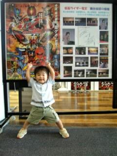 25日 土曜日ココに花火情報のコメントを残してくれたジョリさん。ほんとに感謝デス。パパの仕事の都合がついたので御坊市の花火へ走りました。この花火大会は、私達は初めて。会場はネットで調べて行ったものの…解らんなぁ『今度は街中やし、なんとか流れで辿り着くやろう』と走り出しましたこの辺がB型一家なのかな?御坊市に入って、本当に車の流れについて行って、いい花火の見物ポイントに到着しました。今年は花火運(!?)がよく、4回見た全てが、打ち上げ場所の近くで大きくて迫力のあるものでしたそして、今年最後の夏の花火大会は、私達が今年見た中で1番の数の多さ。始めははしゃいでいたダイゴロは途中で夢の中でも最後の仕掛け花火で復活し、帰りの車で再び夢の中へ…11時頃、パパの実家へキャンディを迎えに寄りました。…車のエンジンがかからなくなってしまいましたとりあえず、じいじの車を繋いでもらいすっとんで帰って来ましたが車庫に入った途端プスン次の日もハードスケジュールなんやけどなぁ26日 日曜日ワゴンRをケーブルで繋いでとりあえずエンジンをかけ、スズキにすっ飛んでいきました。代車にエブリワゴンを借りました。軽だとバカに出来ませんねぇ~ 凄く広くて便利でした。で、今日のメインイベントは電王の映画で~す お盆にジストシネマに佐藤君が来たんですよねぇ~プリキュアの前でも写真を撮ってみたけど、ちょっと恥しそうでした(笑)あっ キャンディと月ちゃんは、ママのじぃじの家でお留守番でした。さて、映画が初めてのダイゴロくん。このところトイレトレを頑張っていたのですが、映画が2時間近くあるのでオムツにしていました。席につく前にもおトイレに行っておきました。…がゲキレンジャーがもうすぐ終わりますよぉ~というときに「ジャー行く!ジャー行く!!」と騒ぎ始めました出来の悪い親って、勝手なモノで「オムツにすりゃええやん」って思うんですよでも優しいパパがトイレに連れて行ってくれました。さて『モモタロスのなつやすみ』が終り、電王が少し始まった頃パパとダイゴロが戻ってきました。そしてクライマックス!!!やったーかっこいい!!!!と興奮していると「ジャー行く」その時、母から出た言葉は「うるさいねんもうすぐ終わりやから」でも「ジャー行く」と大きな声で騒ぎだし、またパパが連れ出していきました。あぁ…私の立場って。。。ボケ母ですわ今度はもうちょっとオシッコももつようになっているだろうか。席は出入口近くの席を指定しよう