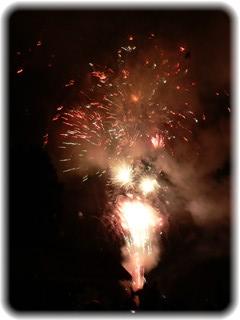 ボンが携帯で撮ったピンボケ花火でもなんだか綺麗でお気に入り写真ウチの町には花火の製造工場があるせいか、小さな花火大会が多い。今日は町内で最後の花火大会でした。このお盆休みに、子供達が花火好きだと知った親は、今日も花火見物の絶好のポイントを求めて走るのであったそして停車した堤防。近くにはパトカーが止まっていた。車に近づく警察官。「止めんな言われるんかなぁ~」と2人で話しているとボンさん何を思ったのか警官にパパァァァーーーほんまもう~ボンの天然にはびっくりしますそのおまわりさん「そこへ車止められたら困る…けど、ちょっと先のパトカーの横に2・3台止められるんやぁ」と誘導してくれました。最近の私達ってツイてるこの調子で、もう少しだけラッキーでいて欲しいなっなぜかの理由はのちのちで、今日の花火は風があり、煙が流れてすっきり綺麗に見れましたってか、田舎の花火大会特有!?の、花火と花火の間隔が、すんごぉぉぉい長いからねでもやっぱり終りの仕掛け花火はとても立派で綺麗でした次は秋の花火大会かなぁ