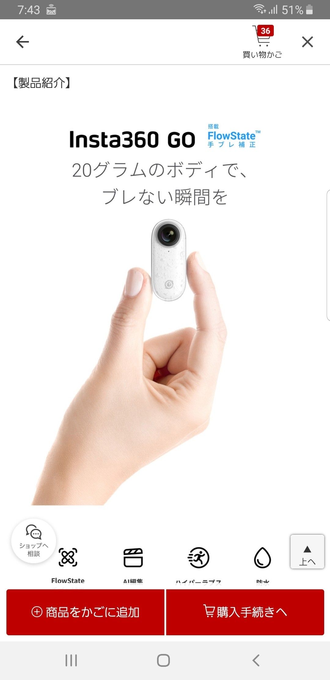 今日は久々のポチを紹介します。 以前から欲しくて欲しくて迷ってたけど、ついに購入を決意しました❗ 今日のポチはこれ! 「インスタ360GO」 これはインスタ360ONE Xって360度撮影できるカメラのメーカーなのですが、これの何が凄いかって言うのは、兎に角手ぶれ補正が半端ないこと‼️ これに限ります‼️ 360度カメラは勿論所有しているので、実体験です‼️ それのホントに手振れ機能を兼ね備えつつ、兎に角小さいスポーツカム‼️ これの良いところは直接商品ページのYouTuberを見てほしいんですが、両手フリーで撮影が出来るとこ!!(゜ロ゜ノ)ノ あと高機能なくせして格安だって言うところだよね😁 これは百聞は一見にしかずと言うことで、商品説明動画を見てみてください☺️ https://youtu.be/DdO4BgmHzDI ※自分の紹介ページではありません😅 商品はこちらから。 ROOM insta360 GO CING0XX/A Insta360 小型アクションカメラ「Insta360 GO」