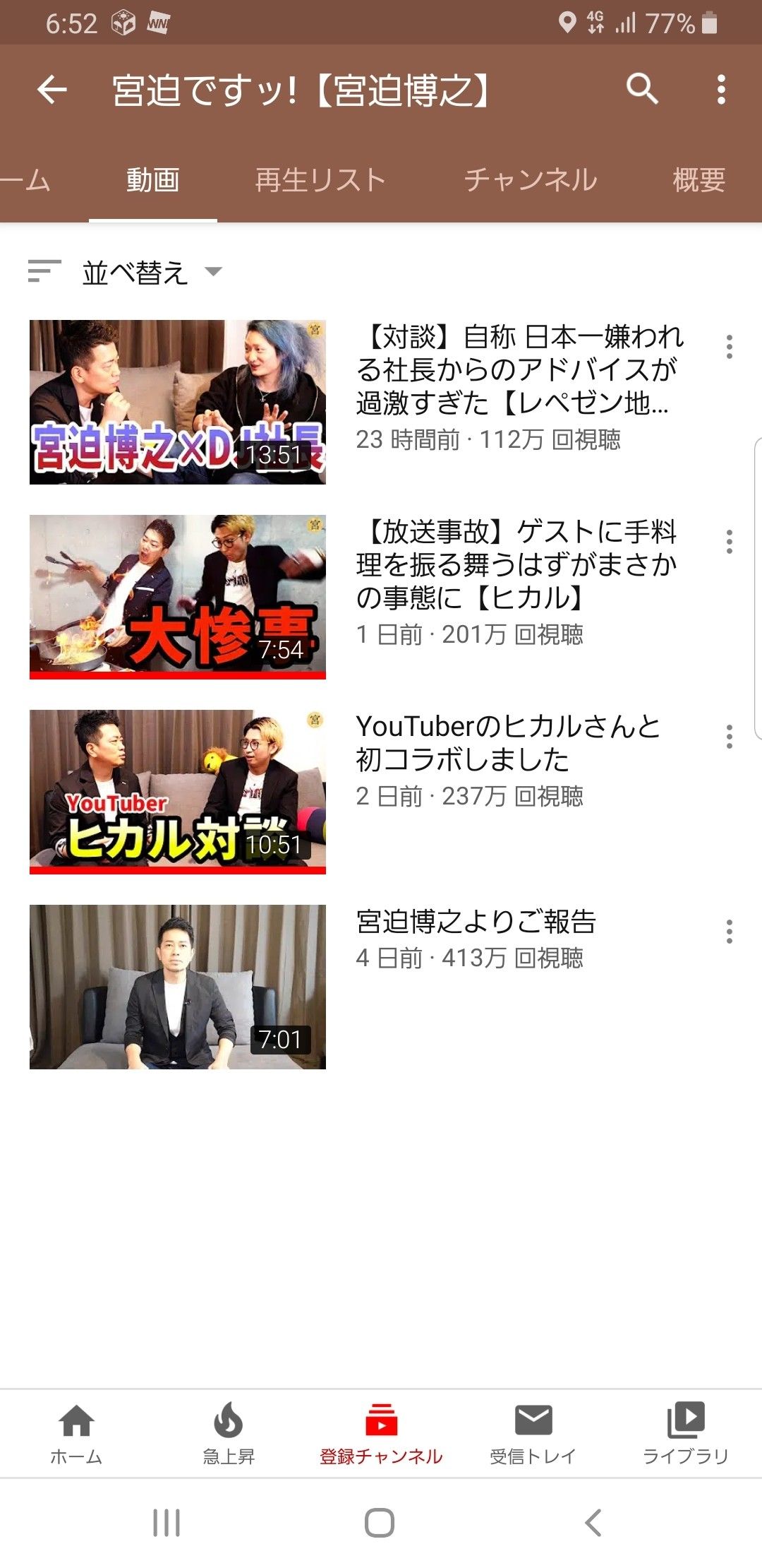 最近良く見ます‼️ 「宮迫です‼️」 雨上がり決死隊の宮迫がYouTuberしたそうですね。 最近テレビでもニュースになってますからね。 芸能人は大変だよね。 でもYouTube見てても、まだ昔みたいな覇気は感じられない。 金回りのよい仕事だから、視聴者からの風当たりも強いし、YouTuberになっても色々言われてるし、まぁそれ覚悟で芸能人になったんだからしょうがないんだろうけど。 どちらにしても、イチ視聴者としてはお笑い好きなので、面白ければ良しと言うことで閲覧してます😃 皆様はどうでしょう? ではまた‼️