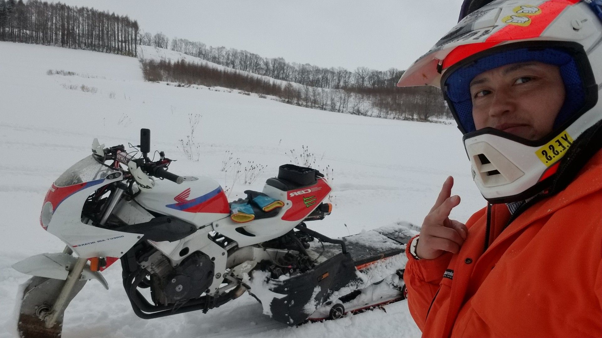 今日はスノーバイクなるものに乗ってきた❗ 友人でもあり仕事関係付き合いもある方が所有していまして、なんとその人これを2台持ってます‼️ 凄い! 普通のバイクにスノーモービルの後ろつけてる⁉️ しかもこの写真のやつはほぼ自作らしい‼️ 走行方法はリーンインと言って、曲がる方向と逆に体を倒す乗り方‼️ 結構難しかったけどとても楽しかった❗ この走行風景ドローンで撮影すれば良かった❗