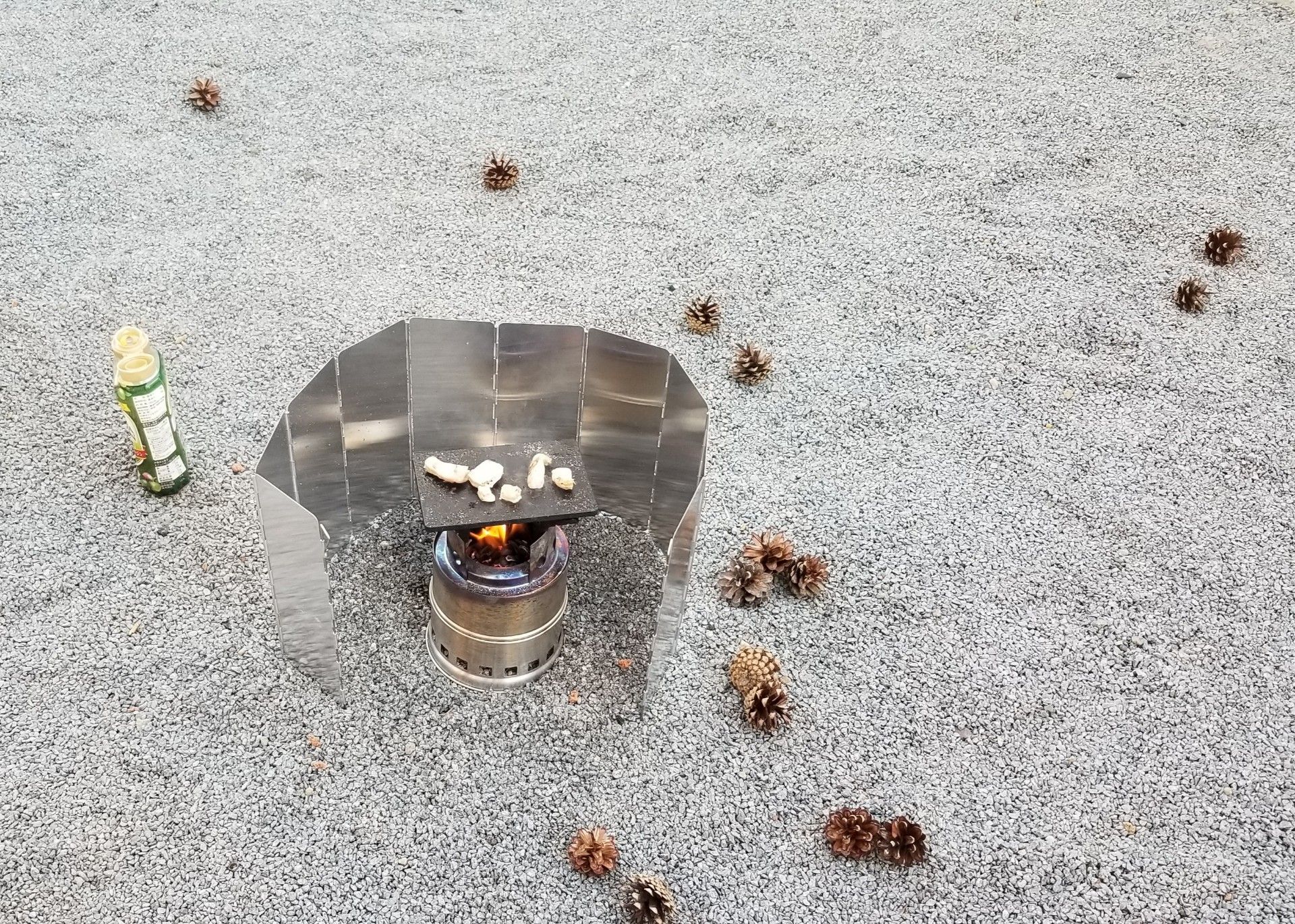 昨日は暑かった~😓 あまりに暑すぎて松ぼっくり拾ってきた(笑) 松ぼっくりは天然の着火材で、マッチ1本でも火をつける事が出来ます。 なのでそれを燃料にしてウッドストーブで焼肉をしてみました‼️ こんな感じにコンパクトに❗ 後は鉄板を乗せて 凄くいい感じ‼️ これで全然焼肉を満喫出来ました‼️
