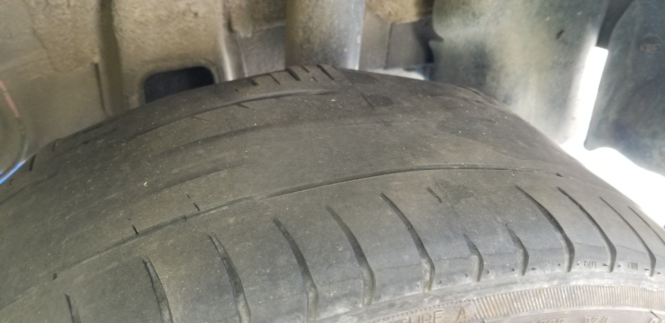 車ってメンテナンスが大事だと言うことは常々思っています。 ちょっとした異変を感じたら、すぐに点検に行くようにしています。 最近運転をしていて、「グ~ッ、グ~ッ」で左前のタイヤ当たりから振動を感じるようになったので、絶対何かあると思い、ディーラーに出しました。 自分で見ただけでは特に異常は見つからなかったけど、所詮素人なので、プロに見てもらった。 原因は !!(゜ロ゜ノ)ノ なんだこれ? 磨耗からか、バースト寸前でした。 なぜこんな風になる? ちなみに左後ろのタイヤがこんな感じだった。 タイヤは 215/35 R19 扁平が極端に小さいので起こりうるタイヤの現象と言われたが、それでも1年しか履いていないタイヤでここまでなるのか? 怖っ!Σ( ̄□ ̄;) 人乗せてるときにバーストしてたらヤバかった⁉️ あ~っまた出費だ😭 事故らなくて良かった😅 皆さんも点検は大事ですよ👍