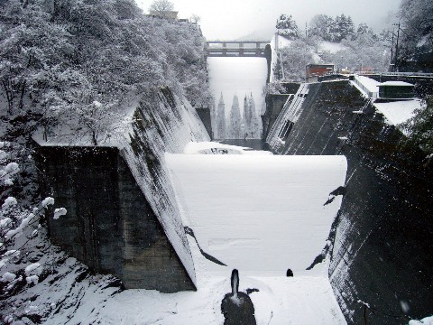 雪の小河内ダムを追え・本編。 せっかく(自分的には)早めに出発し、現地に一番乗りを果たしたのに・・・ 出発する時間が遅かったせいか、ダム提本体への着雪シーンが見れなかった自分。(泣) 意気消沈しながら現地を後にします(涙)。 そして、その後に向かったのが・・・ 余水吐。 が、やはりココも・・・ それ程、雪が乗っかっていません(涙) どうも、元々雪の降り方がイマイチ少なかったようです。 ちなみに昨シーズンは・・・ ま、昨シーズンは久々に「雪の当たり年」でしたからね! コレ位・・・ やはり、この時に無理してでも小河内ダムの正面攻略をしておけば良かったんですね(悔) 改めて来シーズン以降、リベンジを果たさないといけません!(誓) ただし次回以降は・・・ 奥多摩まで、たどり着くのが大変なんですけどね。 引っ越しちゃいますから(滝涙)
