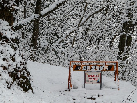 雪の奥多摩湖ロープウェーを追え編。 三頭橋際の作業道のことは、とりあえず放置しておいて・・・ 奥多摩周遊道路入口ゲートまで歩いてきた自分。 が、しかし!! 冷たい現実が待ち受けていました!(涙) って言うか、完全封鎖済み? いや、徒歩でなら入れちゃいそうですけど・・・(汗) でも、歩道部分も、しっかりとゲートが掛かっています。 その先には、管理事務所もありますしね。 さらに・・・(汗) 何故か鶴の湯温泉の配水車が中にいて、しかもエンジンが掛かっています! と言う事は、ゲートの内側に人がいるということ。 勝手に入れば怒られる可能性があります!?(汗) しかし・・・ なんて鶴の湯温泉の車が??? まさか、温泉(と言っても温度が低いけど)の水を撒いて、道路の雪を溶かしているのか?(汗) って言うか、こんな小さなローリーの水程度じゃ、何千回往復しても溶かしきれません!(笑) それよりもブルドーザーで退かしちゃった方が効率が良いですしね! もしかして、単に暖機運転しているだけとか? まさかそんな事は無いでしょうけど。 だって、わざわざ、こんな中に入る必要はありませんから・・・ とにかくです! ゲートの内側に入るのは不可能な感じです。 なお・・・ この時自分は、まだ重大な過ちに気づいていません(汗)。 なのにスゴスゴと、撤退を開始します(恥) さて、その重大な過ちとは!? つづく。