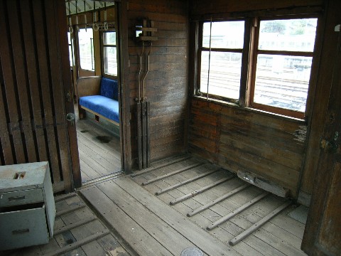 いや、実際には・・・ まだこの辺りだと我慢出来るんですよ! 何せ、すぐ目の前の出入口代わりのドアが開いていますから、外の空気が入ってきますから! とは言え・・・ 何となく淀んだ空気(臭) しかも、梅雨独特の重たい空気・・・ これに耐えながら、この貨客混合の電車の中で画像を撮っている自分(汗)。 なんで無理してまで撮っているのかというと・・・ 実は一つ理由があります。 当時・・・ って言うか、昭和初期までに造られた地方鉄道の電車の特徴が出ているからです! それは・・・ この運転席の位置。 普段、電車通勤している人は分かるでしょうけど・・・ 普通、運転席って電車の進行方向に向かって左側に付いていますよね? でもコレは・・・ 中央に付いているんですよ!! しかも、この丸椅子が凄いです! って言うか、乗務員の安全性そっちのけ???(滝汗) 運転席って言うより運転台??? この構造が昔の地方鉄道の特徴の一つなんです! 元々は路面電車の構造なんですけどね。 この真ん中の運転台。 その構造を引き継いだまま造られているんですよ! 今現在、この手の運転台が残っている保存車輌って少ないんです!! この三峰山口駅の鉄道公園。 ある意味、コアなモノが満載なんです!!