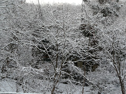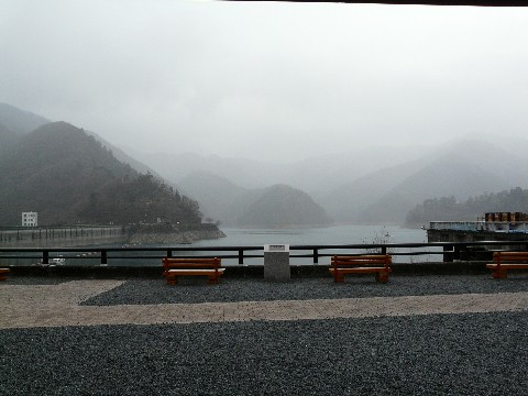 雪の小河内ダムを追え・本編!! さぁ、ついに・・・ 小河内ダムが正面から見える位置にやって来ました!! が!!(固) な、何と言う事でしょう!!(泣) ただでさえ、周りの木の枝が育ったせいで見えづらくなっているのに、その枝に雪が乗ってしまっているせいで・・・(困) 全然見えへんやん!(怒) って言うか、それよりも・・・(涙) ダム提本体に雪が付いてない!!(泣崩) しばし呆然と立ち尽くす自分・・・(魂抜) って言うかぁっ!! ダム提本体の濡れ、すでに蒸発を始めてるやんか!(唖) 来るの、完全に遅かったってこと???(滝汗) 晴れていれば、まだ放射冷却が激しい時間帯。 しかし曇ったままの天気だと、そこそこ気温が上がってくる時間帯。 そのせいで? ダム提本体に付着していた(のかどうかも不明ですが)雪は完全に溶け・・・ 既に水蒸気が発生している!!(泣) ああ・・・(泣崩) さっきまでのテンションは一気に下がり、もう何も考えたくなくなってきている自分・・・(涙) はぁ~っ! これで、少なくとも次のシーズンまで雪を待たないといけません(力尽)。 力なく、その場所を後にする自分・・・(泣) 仕方ないです。 他の場所でネタを探しましょう・・・ だって、まだ8時ですし・・・