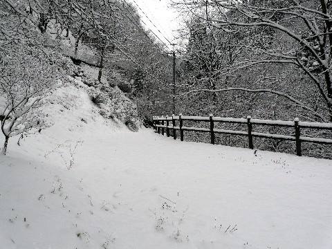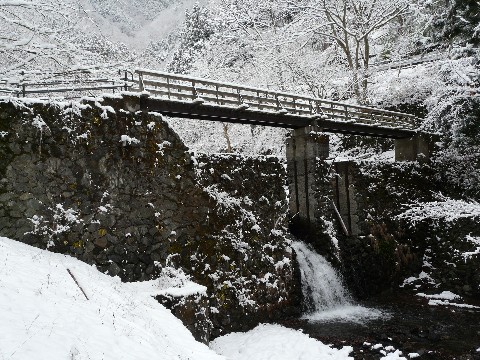 雪の小河内ダムを追え編を改め・・・ 雪の水根沢を追え編???(汗) さて・・・ 小河内ダムの正面攻略は、ダム提本体に着雪がなかったことで失敗に終わり・・・(爆泣) 余水吐も積雪の少なさに無念の敗退をして・・・(泣崩) ただ、このまま帰るのはあまりに悔しいので、更なる別の場所に向かいます! まず最初に向かったのは水根沢。 そう、あの橋付きの砂防ダムがある場所です。 また・・・ 雪が降ることによって、普段では気づかない旧道が見つかる事がありますからね! この水根沢には、まだ何かがアルと疑っている自分。 画像のガードレールの向こう側ある遊歩道を進みます! やはり・・・ こんな平日の朝から、水根沢に来る物好きは、いる訳がありません!(滝汗) 誰も歩いた跡の無い、新雪の上を進む自分。 気分は、ちょっぴりルーラー・オブ・ザ・水根沢 (爆) ただ、雪の下に拳大の石とかが転がっていますからね!(汗) 慎重に進まないと、転んだり足を挫いたりする危険性があります!!(滝汗) でも何でなのでしょう? 雪を見ると勝手にハイテンションな状態になり・・・(笑) 予定外の場所に行きたくなった自分! さて、その予定外の場所とは!? つづく!!