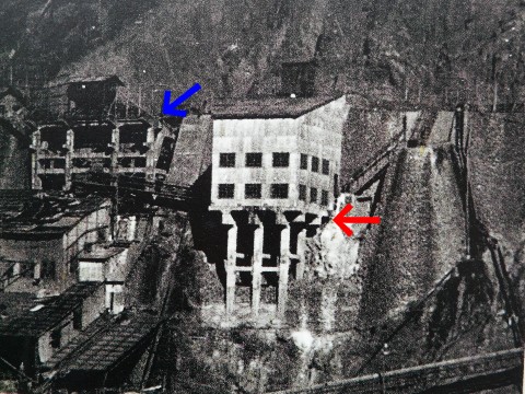 雪は、積もりだす気配を見せませんが・・・(涙) その中を寒さに耐えながら・・・ いや! 確かに寒いんですけどね!(震) でも、何だか期待で一杯の自分は、そんな寒さも苦にもせず・・・ って、何か意識が朦朧としかけてたりしてたんですけど、正直言うと(汗) なんか、頭がフラフラしてましたしね! けどそんな中、とある物に興味を示した自分・・・ 画像のコレには、1年前から気づいていたんですけどね! 小河内ダム50周年行事の時に東京都水道局が建てた案内板がありましたから! 水道局さん! ついでだから、正面の建設事務所跡もキレイにしようよ!!(願) ま、それはそれとして、置いといて・・・ て、出来れば置いといて欲しくないですけど!!(嘆願) ちなみに、画像に写っている建造物の土台らしきものは採石場跡と呼ばれています。 案内板の写真に写っていますが・・・ 青い矢印のものが、それです!! ちなみに、この写真は戦後のものですが・・・ 戦前の写真にも、この台座は写っていました!!(驚) かなり歴史のある物なんです!(80年前には存在していた事になります) ちなみに、赤い矢印の台座も・・・ 下のほうにしっかりと残っています!!(凄) ただし、今は水位が物凄く下がっている状態なので、満水時には水面下に沈んでしまうかもしれませんけど!! って、つい余計なものを見つけて喜んでいる自分(汗)。 一体、雪のほうは、いつ積もり始めるのか? それよりも、寒さに耐え続けられるのか自分?(汗) でも・・・ 更なる発見で、一人萌え上がっていたりするんですけどね・・・ まだ引っ張ります! でも明日の朝の更新は、お休みします・・・