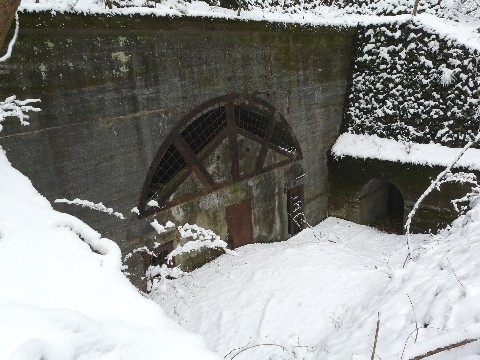 雪の水根沢を追え編。 雪が降り積もった中。 途中、崖から滑り落ちたりしながら向かった先は! 小河内ダム建造時に使われた火薬庫跡(仮)と呼ばれる場所。 雪の中だと、どんな感じなのか? ちょっと気になり始めたら止らなくなったしまったので(汗) ついここまで、よじ登って来てしまいました。 しかし初めて見つけたときと比べると・・・ なんかイマイチ迫力に欠けるというか(汗) しかもですよ! 雪の下に何が隠れているか分からないので・・・ そして、ココに登ってくるまでに1回滑り落ちてますからね(笑) 足元が非常に気になり、この廃施設のことに集中できないというか・・・(汗) それにですよ! この施設の前は完全に封鎖された「すり鉢状」の空間があります。 もしココに落ちたら、上がってくるのは不可能に近そうです!(滝汗) さらに、扉の前に積もっている雪の下には大量の落ち葉が堆積しています!! 下手に足を踏み入れれば、下半身が埋もれる可能性が! ですから、あまり近付く事も出来ず(涙) そして画像を撮ろうとして、引きを取ろうにも背後に滑落する危険性があり・・・ この廃施設の不気味さよりも、自分の命の危険性を感じ(滝汗) 無理して登ってきた割りには、大した画像も撮らずに帰ってきてしまいました! って言うか、長居したくなかったのが本音だったり・・・