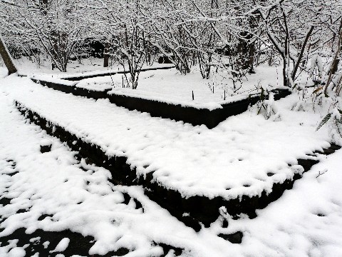 当面の間、色々とバタバタしていますので不定期更新続行します!! おかげで内容も、その時の気分次第で・・・(汗) さて、本題に入る前に・・・ 少し、雪の降り方が強くなってきたので、一旦アパートに戻ろうと考えた自分。 まだ積もる気配はなく・・・ 夜の間に積もってくれる事を祈るしか無いような状態ですし(涙) 都営駐車場に戻ろうとした自分。 ある物に興味を惹かれます・・・ って、相変わらず余計な事ばかりしてますけど!(笑) 洞門っぽい遺構の上にある展望広場へと上がるための階段。 現在、公園内の桜の木の手入れをしている水道局。 そこへの荷物を搬入するためのモノレールの線路が!!(涎) って、まあ、こんなものはどうでも良いのですが・・・ だって、コレだけだとイマイチ「萌え」が足りないので・・・(汗) 実は、そのレールの横に立てられている看板に目が行きました!! 去年の夏の終わり頃。 この上のほうで人が熊に襲われる事件があったんですよ、実は・・・ しかもですよ!! 自分はその時・・・(汗) 西沢渓谷へ向かう途中だったのですが・・・(あの林鉄跡編でお馴染みの!) ちょうど8時頃。 事件は起きました! が・・・ その時間、自分は・・・ この階段の下を通過していたりするんです・・・(滝汗) しかも直前に、都営駐車場に軽自動車を止めて、トイレに立ち寄ってたりするんです(爆汗) ちょっと魔が差して、この階段を登っていたりしたら・・・ 自分も当事者になっていたか、あるいは第一発見者になっていた可能性が!! 何か、嫌なものを思い出してしまったというか・・・(汗) さて・・・ 次回こそは本当に本題に入ります!!