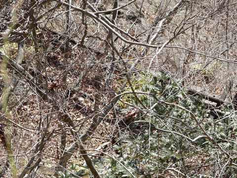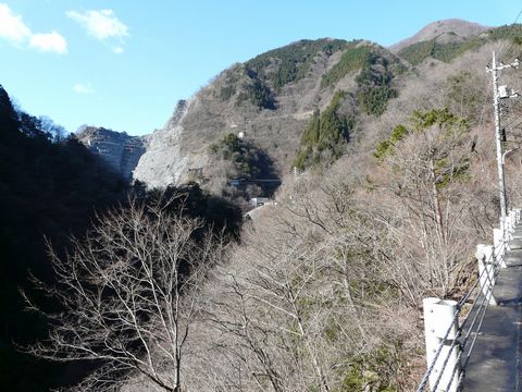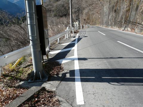 日原・鉱山編2009末。 先日の急激な冷え込みで、路面のあちこちが凍結した奥多摩&秩父方面。 とりあえず当日(12月23日)は暖かかったため、日が当たっている場所なら心配はありませんでしたが・・・ 凍結防止用に撒かれている塩化カルシウム。 これが、まるで凍結面のような状態になっており・・・(焦) 結構怖いものが!! そして何より・・・ コレを巻き上げると、金属部分が腐食しますからね!(涙) ある意味、凍結面よりも嫌なものがあったりします。 そんな路面状況の中をです! 走りながら、何故か前を見ていない自分!!(危) 進行方向に向かって左側は、画像のように葉っぱの落ちた木が茂っている状態。 特にコレと言った景色も無いように思えるのですが・・・ が!!(叫) です!!(唖) 自分。 この木の隙間から・・・ しかもバイクを走らせながら・・・ って言うか、危ないから前見て走ろうよ自分!!(怒) って言うか、良い子の皆さんは絶対に真似しないでくださいね!!(願) そう・・・ 木の枝の隙間から・・・ 見ちゃったんです!(叫) そして、慌てて急ブレーキ!! って、危険な路面状況の中、絶対にやめましょうね自分!!(呆) 今となっては、絶対に見ることが出来ないと思っていたアレ・・・ まさか現行の日原街道から見えるとは見えるとは思っていなかったアレ・・・ さて、その正体とは!? つづけ!!