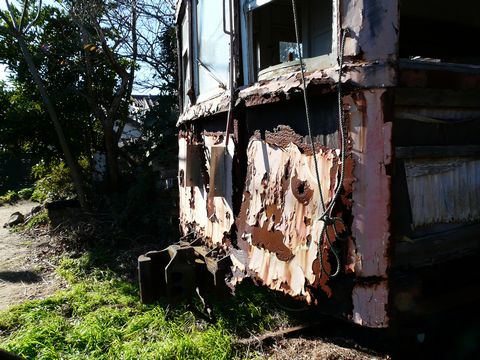 って1年前は、このネタ流行ってたような気が・・・ と言うのは置いといて! 今年気になったモノ。 今年は新年早々から、結構動き回っていたような記憶が! ま・・・ その直後に新しく勤めた会社辞めて(って言うか人員整理?)、奥多摩撤退になるとは・・・ 大体想像していたとおりでしたけど! ま、そんな事もさて置き・・・ 某国営放送の連続テレビ小説「澪つくし」で活躍した、銚子電鉄のデハ101号機。 こちらも会社再建中の苦しい中(涙)。 一応は静態保存の名目を打っていますが・・・(崩) もう既に「滅びが止まらねぇんだよ!(訴)」な状態になっていて・・・(滝涙) 今となっては貴重なピューゲルも圧し折れ・・・(倒) 外板も! 海からの潮風の影響を受けて腐食が進行し、すでに死を待つだけの状態に???(涙) こんな状態で、今後一体どうなるのか? 物凄く気になっていたのですが・・・ 何とですよ! 10月に、あっさりと解体されてしまったそうで!!(爆泣) ああ・・・(泣崩) さようなら、デハ101・・・ 最後に会えた事を忘れません・・・ ちなみに明日も銚子電鉄からの話題です。