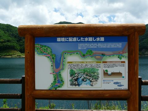 南相木ダム編PART2。 水も澄んでいて、そして回りも綺麗に整備されている南相木ダム周辺。 ダムを管理している東京電力の努力も凄いものがあると思うのですが!! この南相木ダム。 開発の段階から、色々と自然環境を綺麗に保つためのシステムを取り入れているらしいです!(驚) ま・・・ その影響なのかは知りませんが?? ここに住む魚として紹介されている魚類の中に、アレが書かれていません! って言うか、この画は無いだろ!(笑) いや、そりゃ何となく、この形で何の魚かイメージできますけどね!(困) 背中の斑点からしてイワナだと言いたいのは分かりますが・・・ もう少し何とかならなかったのか? ま・・・ 堂々と湖固有に魚として「ブラックバス」と書いちゃう奥多摩湖(小河内ダム)よりは数百倍マシですけど!!(笑) とまあ、そんな重箱隅突きは置いといて・・・ 右岸の斜めカットトンネルを出たところに設置されていた案内板。 そして、そのすぐ脇には・・・ ダメだ!(困) 最近、ダムサイトでこの文字を見ると、どうしても確かめに行きたくなる癖が!!(涙) まだ陽が射しているから天気は持ちそうですが・・・ 何だか背後でゴロゴロ言い始めてきたって言うのに!!(焦) って言うか、この「雨が降り出す前に無事に往復できるか」という緊迫感がやめられない!!(M)。 おそらく、まだ新しいダムですから、展望は「ちゃんとある」はず! 秩父&奥多摩の、お約束的「展望が無い展望台」とは違うから絶対に大丈夫と思うけど!! 展望も無くて雨に降られたらマジ最悪だけど!(泣) やっぱし、行かなくちゃいけない気がする!(涙) って言うか意地でも行く??? と言うことで次回! 南相木ダム右岸の展望台へ!! でも今晩は忘年会なので、続きは明日!