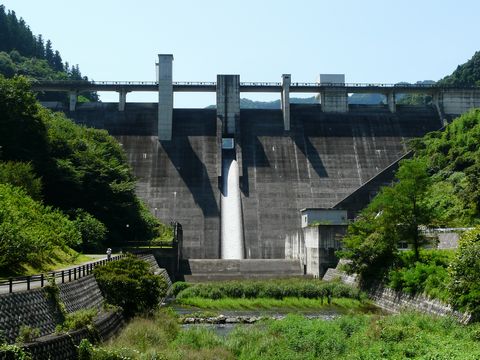 南相木ダム右岸の展望台。 展望台って言うか・・・ って言うか、展望台なのココ??(虚) 単に、右岸道路の支線が行き止まりになっているだけなんですけど! ま、確かに少しだけ道幅か広くなっていて、広場っぽくなってますけど! まだ新しいダムだけに周りの木が生えていないので、展望はしっかりとしています!! 景色としてはイマイチなのかもしれませんが、ダム提本体と、はるか向こうに八ヶ岳連峰が!! なお・・・ この南相木ダム。 ちょっと複雑な事情があるんです! 今、画像に写っている側は千曲川へと繋がるのですが・・・ そう、ここの水は本来、最終的には信濃川となり日本海へと流れるんです!! が!! 振り向くとソコには、取水堰が見えていて・・・ その先は一山越えて、秩父の上野ダムへと繋がっているんです!! しかも、途中に発電施設があるため・・・ 湖の水の大半は上野ダムへと流れて行っちゃうんですよ!! ちなみに上野ダムはと言うと・・・ 神流川へと繋がり・・・ 最終的には利根川となり、太平洋に流れ着くんですけど!! って事はですよ! 本来、日本海に流れるはずの水が東京湾に流れるようになっちゃっているんです!!(困) ま、最終的には、海は繋がっているので全く関係ないといえばそのままなんですけど! でも・・・ 完全に水系が変わってしまっていますからね! 近隣の河川に住む生物の生態系への影響とか、出ないんでしょうかね??(謎) ただの水だから問題は無いのかもしれませんが・・・ この辺が、何だか物凄く不気味なんですけど・・・