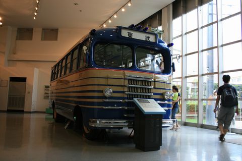 東武鉄道博物館編。 ちなみに! 展示されているのは、電車や電気機関車だけではありません! 特に日光関連ともなると、結構展示物に力が入っていて・・・ 昭和20年代~30年代に使われていたバスも展示されています! ちなみに、このバス・・・ 偶然にも駅の物置として放置状態にあったものを発見し、それを復元したそうなんです!!(驚) って言うか、よくもまあ、解体されずに残っていたものです!!(凄) で・・・ このバス。 キャブオーバータイプと呼ばれ・・・ 現代のバスのようにエンジンを後方に積んではいないんです!(俗に言うRR) 普通のワンボックス車と同じくエンジンが運転席の下辺りにあって、ドライブシャフトを通して後輪を動かしているんです! そのおかげで、ラジエターが正面についているんですよ! で! 特徴のある顔つきになっているんです!! しかもですよ!! このバス。 なんとガソリンエンジンなんです!!(唖然) エアコンとかパワステとか付いていない時代ですからね! 余計なエネルギーを消費しないとは言え、一体どれくらいの燃費だったのでしょう???(喰) ちなみに・・・ 何故にガソリンエンジンなのかと言うと?? それは! 昭和20年代、戦前の話ですからね! まだディーゼルエンジンの信頼性が無かった頃の話ですから! 当時の鉄道省(後の国鉄、現JR)だって17リッターの直8エンジンを積んだガソリンカーを造ったりしていた事があるくらいですから!!(唖) その例に漏れず、このバスもガソリンエンジンを搭載したのかと・・・ あ、あと予断ですが・・・ このウインカーの形状(刺) 小さくて視認性は悪いですが、何となく気に入りました(笑) 正に「方向指示器」です!!