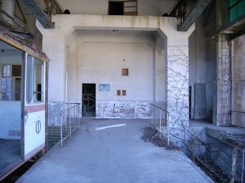 リメイク・奥多摩湖ロープウェー編。 冷え切った・・・ しかも、物凄く澄んだ空気。 そして、静まり返った空間。 さらに、怖いほど白い壁? 奥多摩湖ロープウェー・三頭山口駅跡。 何故かココは、来てしまった人を引きずり込むかのような空気が漂っています・・・ って言うか一度入り込んでしまうと、なかなか抜け出せないというか・・・ 取り込まれてしまうというか? この空間と一緒に時間が止まってしまうかのように?? そして、もう誰も乗ることの無いロープウェー。 昭和41年に廃止・・・ って、たった4年で廃止になっているんですけど!!(涙) そのまま、ただ一人? そして相棒は、対岸で同じようにぶら下がっているそうですが・・・ そちらの方は見に行ったことがありません! 駅に屋根が付いたままになっているのが幸いして・・・ 44年が経過した今でも、そのままの姿を維持しつつ残っていたりするんです。 でも・・・ 自然の侵食とは恐ろしいもので・・・ いつかは、植物と一体化してしまう日が来るのか??(怖)