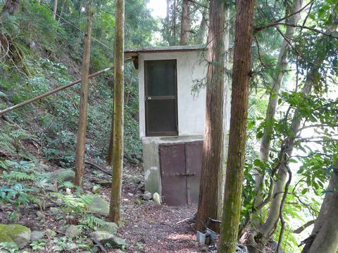 御岳渓谷・右岸を遡上中に遭遇した謎の建造物。 いや、ちょっと待って!? コレ、どう見ても「ヘン」なんですけど!!(焦) 何となく2階建て構造? でも・・・ どうやって中に入れというの???(飛) まさか何でも、下の鉄扉から入って・・・ 中に梯子とかエレベーターが付いている訳でもなさそうですし! って言うか下の扉。 どう見ても物置かゴミ捨て場?? そして、上の扉に行くための階段が無いだけでなく・・・ 近くに梯子とか置いていない! さらに鍵がかかるドアノブまで付いていて!!(唖) しかも、1今も窓が無い! 何となく、給水用のポンプ小屋のようにも見えますが・・・ 一体どうやって使っているのでしょう??(謎) 御岳渓谷最大級の謎が、今ココに???(笑)