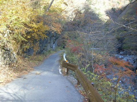 思い起こせば2007年の10月。 自分は、この旧道に少しだけ入り込んでいました! その時は、「崩落による危険があるので立入禁止」みたいな看板が立っていて・・・ 自分、少しだけ・・・ 画像の位置まで入っただけで撤退していたのですが!(恥) ま、この時は、紅葉もイマイチで!(涙) これ以上入り込む価値もなさそうなので、スルーしちゃったんですけどね!(困) それがですよ!! まさか「とあるモノ」を見落とし、それを2年半近くも放置することになるとは!!(悔) 何故か以前よりも道路がキレイになっている気がするのは何故??(謎) 廃道となっているはずなのに!? 立入禁止の看板がなくなったので、単に気分的な問題なのか??(謎) とか、思っていたらですよ!! あれ!?(驚) 廃道なのに、新たに舗装し直されているんですけどココ!(衝) 一体何があったんだ? この旧道。 再び正規ルートとして復帰するのか? いや、絶対にそんな事は無いはず!! だって道が狭すぎて路線バスは交差できないし、新しくトンネルを掘った意味がないですし!! 謎を抱えたまま、この先を進みます!! つづく。