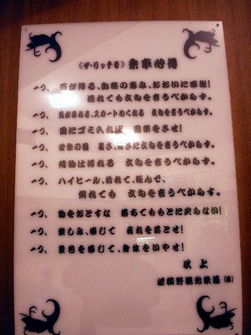 リメイク・嵯峨野観光鉄道編 さて・・・ 保津峡まで、嵯峨野観光鉄道のトロッコ列車を利用することになった自分ですが・・・ 混雑していた上・・・ 乗車時間が前倒しとなり、画像を撮っている暇があまり無かったので!(涙) 4年前の画像。 ココで以前に使ったけど消去しちゃった画像を利用して紹介して行きます!!(今日だけ) とにかくです! 上の画像に乗るときの注意書きがありますが!!(焦) 雨が降る、自然の恵み、大いに感謝! 濡れても文句を言うべからず!とか・・・ 目にゴミが入る、目薬をさせとか・・・ 服が汚れる、文句を言うなとか・・・ 物を落とすな、決して元に戻らない!みたいな事が書かれています!(笑) そう・・・ ココで使用されているトロッコ列車とは! 元々は国鉄時代に使用されていた貨車。 それを改造して、椅子を付けて人が乗れるようにしただけのもの! もちろんエアコンなんて付いていません!(笑) そして、元々は貨車用の足回りですからね。 人が乗った程度では、サスペンションは殆ど沈みません!(硬) 走行中は、ピョンピョンし跳ねます!(揺) 乗り心地は決して良いものではありません!! それなりの覚悟がないと乗れません!! でも人気があるんですよね・・・ それを、ちょっとオーバースペック気味(V型12気筒・ターボ付、5000馬力)のディーゼル機関車が、亀岡方面に向かって押していきます! さ、コレに乗って保津峡へと向かいます! とりあえず今回は先行調査と言う形になってしまいますが・・・ っていうか、次回はあるのか不明ですが・・・