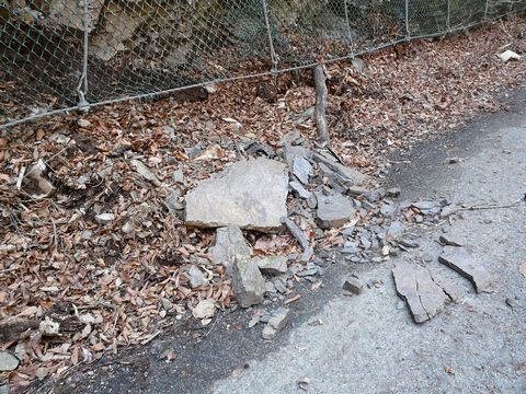 トンネルを抜けると・・・ ソコに広がるのは、今までとは打って変わって廃旧道っぽい道? 路面の荒れ方とか、落ち葉とか、浮き砂とか・・・ あの、廃同なのに舗装が直されていたトンネル手前とは全然違う世界が広がります! って言うか気分てきには、こっちの方が好きですけど!(笑) とは言え、秩父の山間部では現役の道でも「こんな状態」の道が多いですからね! 特に感慨深いものはありませんけど!(笑) ただし・・・ なんか出ちゃってるよ!(焦) 落石防護ネットの隙間から!!(崩) この近辺。 何度も言いますが、岩盤が結構脆いです!(怖) 聳え立つ岩盤の表面が、画像のように少しずつ薄く剥離していき! 崩れ落ちてきます!!(怖) ネットがあるからと言って、決して安心するわけには行きません! 下手をすると数トンもある石の塊がひび割れて落ちてくる事だってあるのですから! って、言い遅れましたけど! 良い子は絶対に真似しないでくださいね!! もし落石事故に巻き込まれて怪我をしても、救急車が来るまで1時間以上もかかる場所ですし・・・ 何しろ携帯電話は通じませんから、こんな場所!!(滝汗) それ以前に廃道ですから、捜索の車両も入って来れないはずですし!!(困) そして、さらに路面は!! 苔、生えちゃってるよ!(生) 雨の日なんて、冗談抜きに滑りそうです!!(転) そんな路面状況になってしまいましたが・・・ まだ先に何かがあるかもしれません! 地形的に言って隧道は、もう出てこないと思いますが・・・ さ、この先に待ち受けるものは! まだ続く!