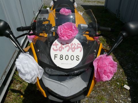 そう言えば四半世紀くらい前。 そんな歌が流行ったような気がする・・・ って言うか、もうそんなに経ったのか!?(焦) とは言え今でも、3月頃になるとラジオでは良く流れたりしますけどね! って、そんな話は全然関係ありませんが! ついに来ちゃいました(悲)。 以前、リメイク・さよなら鳩サブレ号編で紹介した「あの時」が!! 予定より、かなり早まってしまったので自分としても、ちょっと困惑しているんですけどね! 何しろ、5月23日の「ひざスリ祭り」を引退の日にしようかと思っていたので! そして6月のGSチャレンジの日程に合わせて交代させる予定だったのに!! まさか、こんなに早くも・・・ そして予算の関係上。 さらに納期の関係上。 などなど色々なファクターも手伝って!! と言う事で、今回は迫る日程の中。 仕事も忙しくて、中々準備が出来ずにいたのですが! 先週末(4/17)に雪が降るという予想外の出来事があり、繰上げ引退ツーリングで那須モータースポーツランドでのサーキット走行を予定していたのが中止になり!!(悔) おかげで、丸1日つかって準備しましたよ! ただし! 実家の野前では、あのプロジェクトは遂行できません! 何しろ人目に付きすぎますし!(恥) 朝5時であろうと、周りの家の人達は(老人が多いので)散歩に出ていたりしますからね! あんなところを見られたら!!(赤面) って言うか、近所にヘンな噂が立ったら大変ですし!(困) と言う事で、どこでやるかも考慮しつつ、あの計画が進行します!! 前回・・・ 鳩サブレ号の時も、本当は画像のようなお手製の花を作ったんですけどね! そして、ソレを飾って画像を撮ったんですけどね! 既に死に掛けていたデジカメのデータが飛んでしまい!!(悔) 100円ショップで買ったプレゼント装飾用のリボンの花で、再度飾りつけしたりしたんですけど・・・ と言う事で、今回は前回の反省も考慮しつつ! そして人目を憚りつつ! でも見られると、マジで恥ずかしいので「とにかく時間勝負」で!! さよならエフハチ編。 今日からスタートです!