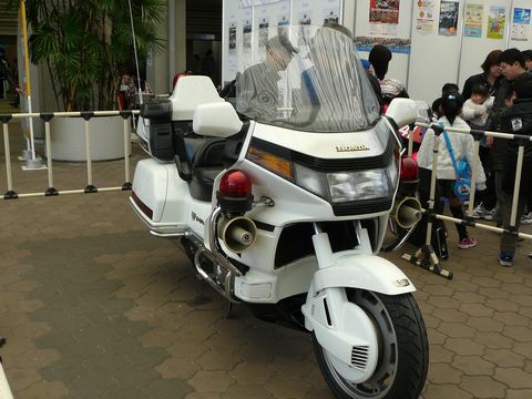 とりあえず明日まで続く予定の大阪モーターサイクルショー編2010。 今年も会場の外に、ポツンと寂しく展示されていた・・・ 大阪府警による、安全運転普及コーナー! そしてソコに展示されていたのは!!(叫) って言うか、まだ現役で使っているGLってあるんだ!(驚) コレが交通機動隊に配備されたときは驚きましたよね? 当時の国産車は750ccまでしか販売できない時代でしたからね!(懐) もちろん、180キロでリミッターが作動するようになっていましたし!! それ以上の排気量は、逆輸入車としてでしか入手できませんでし・・・ このGL1500も、正規ルートで毎年150台程度しか国内に入って来ず。 それも、速攻で売り切れてしまうバブル時代!!(凄) そんな時代に、交通機動隊に配備されたGL1500。 その大きさと、重純な車体! 白バイとして「スピード取り締まりの任務が遂行できるのか?」 ちょっと心配なところがあったんですけどね! でも・・・ 自分は、このGLの恐ろし(凄)さを知って以来、絶対に逃げようなんて考えは起こさないようにしましたけどね!!(怖) と言うのも・・・ 当時、AX-1に乗っていた自分。 あの当時は・・・ ツーリング先で、いつの間にか何人かの全然知らない人達と一緒になって走ってたりしたのですが・・・ 中央高速の双葉SAで知り合ったGL乗りのオジサマ。 そしてもう一人、見知らぬFZR250R乗りの人。 自分のを含めて、全く見ず知らずの3台が一緒なって走っていたのですが! もちろん! オフ車に毛が生えた程度のAX-1。 120キロ出ちゃうと、風圧でまともに乗っていられません!(涙) 必死になって、他の2人に付いて行っていた時の事でした!! マジで涼しげな顔で運転しているGLオジサマ。 それを1台のソアラがぶち抜いていきます!! 恐らく、リミッターが効いてしまう180キロは確実に出ていたのかと!!(怖) 後部座席にはチビッコが乗っていて、GLオジサマに手を振ってい・・・ なんて思っていた矢先!(唖) GLオジサマ。 左手を高く上げて、チビッコにピースサイン出しながら・・・(忽) 一瞬で、そのソアラを抜き去り!!(呆) 自分の視界から消えていきました!!(泣) それ以来、絶対にGLは敵に回しちゃいけないバイクだと・・・(怯) 自分の脳裏に刷り込まれたのでした・・・ よく見ると、結構塗装が疲れているGL白バイ。 まだ現役稼働中なのでしょうか?? って言うか、とっくに引退していたのかと思っていたのですが・・・ 微妙に懐かしい白バイの展示がしてあった、大阪モーターサイクルショーの屋外会場なのでした。