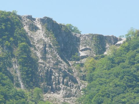 秩父のヘソ?叶山鉱山編・ファイナル! さて今度は・・・ って言うか、いきなり場所が変わって中里町側から叶山鉱山を見てみます! こちらから側からだと・・・ 単なる岩山にしか見えませんが・・・ って言うか、久々に登山に出掛けたくなってきたZO!! この手の岩場を見ると、どうしても血が疼きます!! やはり、バイクで走るならダート! そして登るなら岩場!! 自分。 どうしても、そういう方向に進む癖が!! ただ・・・ 崩落の巣だぞ叶山!!(焦) 元々、石灰質の岩は崩れやすいですからね!(怖) 下手に踏み込むと、自分の命に関わります!!(焦) しかし・・・ そんな場所で採掘を続ける人たち。 ココにも、様々な人間模様が展開されているのでしょう! そんな事を思いつつ・・・ って実は、とある橋の上から、この光景を見ていたのですが・・・ 振り返って、神流川の上流方面を見たとき!(硬) って言うか自分。 一瞬にして「あんなモノ」を見つけるとは想像もしていたなかったのですが! って言うか今まで何十回と、この橋の上を通っているのに全然気が付かなかったのですが!! 画像が小さくてゴメンナサイ!!(涙) 何か見えちゃっているんですよ! 実は・・・(笑) 思わず確認に行きたいものが!!(涎) へへへ・・・ と言うことで次回! 一体何が見えているのかの話題に移ります!