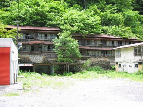2005年当時。 自分が初めてこの地に迷い込んだ頃・・・(汗) この廃寮には、まだ人の姿がありました。 住んでいたのかは知りませんが、鉱山で働く人達の車が停めてあり・・・ それなりの手入れもされていたようです。 そのせいもあって自分は、この寮がある付近一帯に入り込むことはありませんでした。 やっぱし・・・ 余所者が勝手に仕事場付近を歩き回るのは、ソコで働いている人達にとって気がかりになるでしょうし・・・ 邪魔になるかと思って、意識して近付かないようにしていました! ま・・・ 自分が奥多摩で働いていた時代。 自分の職場も、こんな雰囲気の建物でしたから!!(笑) さすがに廃墟系の人達が迷い込むことは無かったけど、半分崩壊しかけた木造社屋とかが現役で使われていたしたから!!(笑) しかも社内を公道とか川が通っていた関係で(凄)、一般の人や登山客も普通に通り過ぎてましたから! その人達の事は、通常以上に気を使ってたりしましたからね! そう言った心情が、この廃寮に近付かないようにしていたのかもしれません。 そして、この廃寮も・・・ 一帯の通行が禁止され! ま、度重なる廃墟系の人達による不法侵入とか、色々と問題もあったようで!(怒) って言うか、ココは! 使っていないけど現役鉱山の所有物です! 勝手に入ると不法侵入で検挙されます! 皆さん、ルールは守りましょうね!(願) そして、人の出入りが禁止され・・・ 放置された建物と言うものは・・・(泣) 想像以上の早さで痛みが激しくなります(涙) 何となくなんですけどね! そんなに早急に撤去されちゃうことは無いと思うんですけどね! すでに半世紀近くも経過している建物ですからね(凄) 何となくですけど・・・ 自分の悪い勘だけは、良く当たりますからね!(困) この光景も、あと数年なのではないかと言う気がして!!(涙) 既に補修できる範囲を超えちゃっていますし!!(困) この日、5年目にして初めて、この場所で画像を撮った自分なのでした・・・
