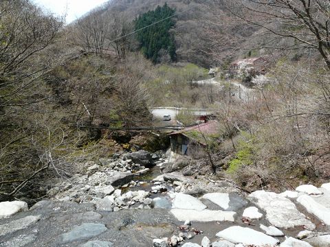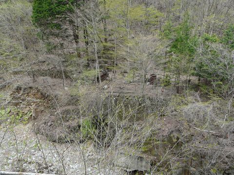 鉱山道路周辺の、廃社宅群は・・・ 雁掛トンネルよりも八丁峠側のものが有名ですが・・・ そして鉱山施設も同様なのですが・・・ 実はです! トンネルよりも中津川方面の方が、メインの鉱床だったりするんです! そして、画像の中に青丸で囲った付近にも鉱山住宅群が実在したらしいのです! その名も大黒社宅。 ただし、既に何も残っていないようなのですが・・・(涙) でも今年は、周りの木が葉が生える前ですからね! 対岸に何かの残留物が見えるかもしれません!! と言う事で・・・ って言うか、確かに何か石垣が残ってる!! 恐らく何かの建造物があった形跡があるっぽい? しかも、さらによく観察すると・・・ ちっ!(悔) 一瞬、トロッコかと思っちまったよ!(泣) 何かのバケットらしきモノ。 そして何かの機械部品だった物らしき残骸。 さらに、もしかしたら索道用のワイヤー!?(輝) ただ、思いのほか視界が悪く・・・ そしてデジカメのバッテリーが限界を迎えつつある状態で、あまり深追いが出来ません!(悔) なんか廃焼却炉っぽい物も置いてあるし・・・ 意外に、こちら側の廃社宅にも人がいたような形跡が、随所に見受けられるのですが! 悔しいことに今現在。 対岸に渡るための橋がありません!(泣) 川を直接渡るにも水量が多くで無理っぽい? 仮に渡れたとしても・・・ コレだけ、はっきりと見えちゃっていると言う事は!(困) 自分が歩いていたら、確実に発見されて注意を受けるのは確実!!(泣) 河原を歩いている分には、鉱石の収集に来た人(結構拾いに来ている人がいます)と思われてスルーしてくれますが・・・ さすがに敷地内を歩いていたらマズイですしね!(涙) 来年以降は、この大黒社宅に関するアプローチ方法も考えてみないと! そしてそれには、林道・大滝上野線を如何に攻略するかが問題となってきそうです。 また新しい宿題が出来てしまったような・・・ つづく。