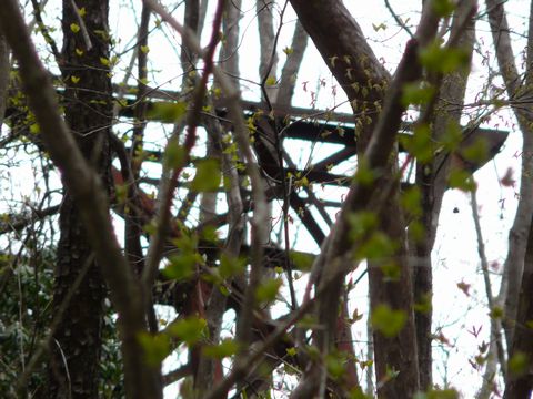不甲斐ない撤退ばかり繰り返していますが・・・(恥) 自分。 そこまで無謀なことは絶対にしません! ですが・・・ 今度は、ちょっと違いますよ! 画像は、葉っぱの無い時期にしか見えない廃・鉱山住宅。 今でも疑問なのですが・・・ この社宅と、さらに奥にある2棟だけは、どうやって入るかが不明です! って言うか、目の前の川を渡らないと入れないのではないかと思うのですが・・・ もしかしたら、以前は橋が架かっていたのかもしれません!? そして・・・ おそらく、対岸へと荷物を運んでいたのではないかと思われる・・・ 索道の起点。 って言うか集積場らしき跡を去年、発見しました! が・・・ ワイヤーが繋がる対岸は!(隠) 木の葉で隠れて何も見えず・・・ が! 今年は違います!! まだ木の葉が生えていませんからね!!(願) もしかしたら見えるかもしれません!!(期) そう対岸に!! おそらく、対岸の廃・鉱山住宅に物資を輸送していたのであろう索道! たぶん、川を渡っているワイヤーは絶対に、そのための索道に違いないはず!! 自分・・・ 目を凝らして対岸を見ます! でも視力はイマイチ良くありません!(泣) とりあえず当日は眼鏡をかけてましたけど! そして! そう・・・ そうです!! 魂の眼で!(笑) 心の眼で見れば!!(笑) って言うか!(叫) 本当にあった!!(叫) あれは間違いなく、索道を操作するための小屋!! さあ! 良い子は真似しちゃダメだぞモード再発動です!?