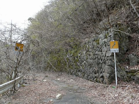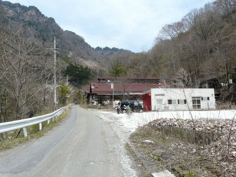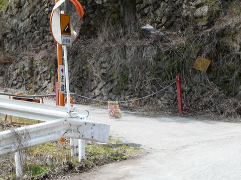 鉱山道路編2010。 さて、ここで問題です! って言うか「間違い探し」???(笑) 上の画像。 前回のものと比べてみてください!(焦) どこか様子がヘンです! って言うか、屋根に貼ってあった波板が1/4くらい取れちゃってるし!!(泣) 3月以降の強風の日に取れちゃったのでしょうか?(涙) こうなると、痛みの侵攻が一気に早まりますからね(涙) この光景も、そう長くない時期に見れなくなってしまうかもしれません。 なお当日は、本当に「こんな状態になっている」なんて気付かなかったのですが・・・ でも自分の中の何かが、この光景が消えてなくなってしまうという危機感を感じたのか?(謎) 5年間で初めて、違う場所からこの廃銭湯を見てみようと思い・・・ 廃道となった鉱山道路・旧道に入ります! 画像の位置から二股になっていて・・・ 左側、F650GSが置いてある方向に旧道があるんです! もちろん! 通行止になっていますけど!(困) さ、この先の状態は一体!? まだ続く!