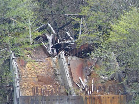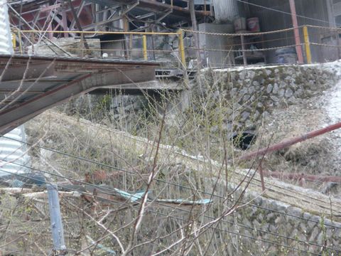 鉱山道路編2010。 この鉱山にも、シックナー(濾過用沈殿槽)があります。 採掘された鉱石と一緒に出てきた鉱水に混じっている有害な物質を取り除くため、どうしても必要な装備なんです! しかも・・・ 仮に鉱山が閉山しても、数十年もの間。 このシックナーだけは維持しないといけないこともしばしば!(辛) 幸いにして、この鉱山の場合・・・ 採掘しているのが純度の高い石灰石だけなので、鉱毒に類する物は排出されません! とは言え、設備がないと営業できないので! しかも荒川の源流の一つ。 東京都に住む人たちにとっては、ここから出る水で暮らしていることも多いですからね! 注意するに越したことはありません! って、話がズレましたが・・・ このシックナー入口脇には・・・ 対岸に渡るために唯一の道が残っています! が! 絶対に立ち入ることは出来ません! って言うか・・・ 仮に通って良いといわれても行きたくないね、コレは!!(落) 対岸への導水パイプの共に、僅かに木の板が渡してあるだけ!! しかも、体重をかければ確実に踏み抜いちゃいそうなほど劣化が激しい!!(割) ワイヤーだって、たぶん人間1人の体重を支えるのが限界みたいな感じが漂いまくっているし!!(泣) でも・・・ この対岸には、地下坑道に入るための線路が残っているらしいんですよね・・・(困) とりあえずです! 今回は、周りの木の葉が茂っていないのを良いことに! デジカメのバッテリーの残りが少ないから連写は無理だけど、事故狙いの画像を撮ってみます! しかも、少しでもバッテリーの寿命を延ばすため、液晶画面も消し・・・ 細かい部分は、帰ってから画像解析することにして・・・ そして! 何気なく撮った画像なんですけどね・・・ よくよく見てみたらですよ! って言うか、奥の方に何か写ってる!!(叫) って言うか・・・ うおお!(叫) 線路、写ってるやん!! って言うか、本当にあったんだ「せ・ん・ろ!」(萌) おおお・・・ バッテリーに余裕さえあれば!(悔) って言うか、デジカメのバッテリーも「ご利用は計画的にね!」(泣) とは言え! 噂で言われていた線路の存在が確認されました! これで鉱車(トロッコ)とか写ってたら最高なのに!!(悔) が! です・・・ その他の画像を整理していた自分。 偶然にも「とあるモノ」が写っているっぽい画像を見つけちゃったんですよ!(驚) その「とあるモノ」とは一体!??? つづく。