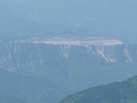 林道・愛宕山線から見えた光景。 そこには「巨大隕石の落下跡」と言っても、半分くらいの人が信じてしまうほどの大きな穴が!!(叫) ちなみに、グー★ルマップの航空写真で見てみると・・・(「叶山」で検索してみてね!) とにかくすごい物が写っています!(唖) これが叶山鉱山と呼ばれる場所です!!(凄) って言うか、山一つ丸ごと石灰岩?? おそらく、この規模は武甲山を上回っているのではないかと! しかも、航空写真でも判るとおり、ものすごく純度の高い! そして真っ白な石灰の塊が見えています!! そして、この鉱山で採掘された石灰石は・・・ なんと! 30kmにも及ぶベルトコンベアで、秩父市内にある某セメント工場に運ばれます!(驚) が!(叫) 今年の6月。 この工場が閉鎖を発表!!(驚) ベルトコンベアの経由地である、吉田町と小鹿野町は町の財政にかかわる最大の危機に襲われます! と言うのも・・・ こんのコンベアが通る場所の借地料がなくなってしまうと、町の財政は一気に悪化!!(泣) さらに言えば、その石灰輸送を担っている秩父鉄道も存続の危機にさらされる危険性があります!!(焦) 両町の町長は、工場を操業停止しないよう、某セメント会社に嘆願に出かけたそうなのですが・・・ 幸いにも、工場での精製は終了しますが石灰の販売は続けるため・・・ そして精製は熊谷で行うことが決まったため、とりあえず3者の最大の危機は免れたということなのですが・・・ 秩父地方、存続&繁栄を左右するだけの影響力を持つ叶山鉱山!!(凄) その規模も桁外れに大きい事が良く分かります! で・・・ 久々に鉱山入口に行ってみたくなった自分。 すぐさま国道462号線に降ります! そして!! いやぁ・・・ その大きさを改めて実感しましたよ! って言うか、想像以上に大きいんですけど!!(唖) 正面の岩。 って言うか山。 その全てが石灰岩の塊!!(唖) そして、それこそが叶山鉱山!! 国道両側の斜面さえなければ・・・ まるでそれは! 秩父のエアーズロック?(笑) さすがにアポリニジの方は住んでませんけど! とりあえず次回は、スポットを当てて拡大画像を撮ってみます・・・