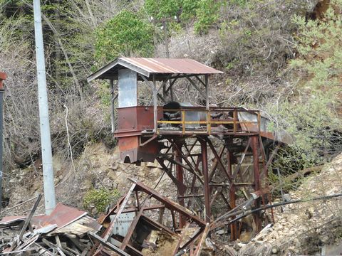 鉱山道路編2010。 既にワイヤーが撤去され(涙)。 ただ一人(?)立ち尽くしている巨大な鉄塔! この地に張り巡らされた索道網の遺物の一つです! そして、その起点はと言えば!! この精製所の上のほうにあるはず! デジカメ27.5倍モードで・・・ って言うか液晶画面見てると、マジで酔っちゃうんですけど!!(泣) 3モード手振れ補正と、高速連写モードの併用で何とか画像を撮ることはできるんですけど!! そして自分は! 昨日書いた予測点より、画面が左側の方を写した時に叫びました!! うあった!!(激) ブレまくる液晶画面。 あと1分もすれば確実に酔って、その場に塞ぎこみそうな感じ!!(揺) そして、マジで限界を迎えつつあるデジカメのバッテリー!!(焦) って言うか、赤いランプが点滅してるんですけど!! 全てが限界に近付いたその時!!(熱) 鉄塔発見!!(凄) 索道の起点。 ついに発見(確定)せり!!(泣) デジカメのバッテリー。 上がるのを覚悟で連写する自分。 でも倍率が高いため、ブレまくって液晶画面内に目的物を捕らえるのが大変! そして、あまり無理すると乗り物酔い(?)で確実に!!(倒) でも、何とか画像に収めることが出来!(嬉) これで長年の謎の一つが解けました!! って、今・・・ 「一つ」って書きましたよね? そう・・・ まだ一つ残っているんですよ! この先に続く索道が!! その話題は明日以降にして、ちっょとココで番外編?? つづく