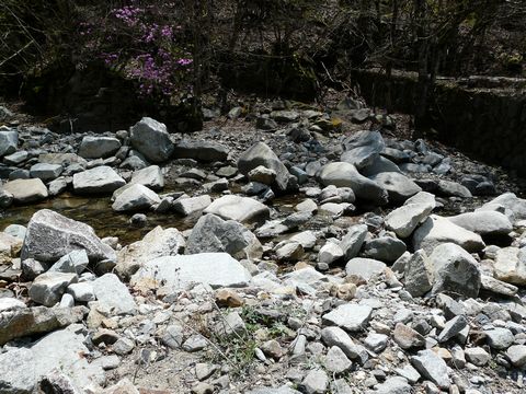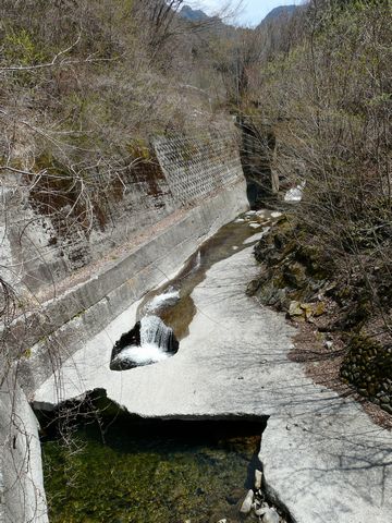 何度もの土石流と戦い・・・ そして、大雨や融雪時の大水により氾濫を繰り返したであろう、鉱山を貫く川。 ちなみに荒川源流の一つです。 さすがにココまでタマちゃん(何処に行っちゃたんでしょう?)は上がってきませんでしたけど!(笑) ふと、とある橋の上から見た川の様子!(凄) 自分。 思わず声を上げちゃいました!(叫) って言うか・・・ 自然の力って凄すぎ? 人間の力って、あまりに小さすぎ? 川の氾濫に備えて治水工事を行ったであろう川は・・・ その川底をコンクリで固められたはずなのに!! 再び、この殻を突き破って!(凄) 元の姿に戻ろうとしています!! 元あったであろう川底に入ろうとする水!! おそらくは・・・ コンクリで固められた後。 大雨時に地下水が増水し! そのコンクリを下から突き破ってしまったのでしょう! そして中の土砂を押し出し・・・ 中空の川底(?)を造り出したしまったのかと!!(凄) ココに住んでいた1000を超える人たち。 一体、どんな形で自然と闘っていたのでしょう???