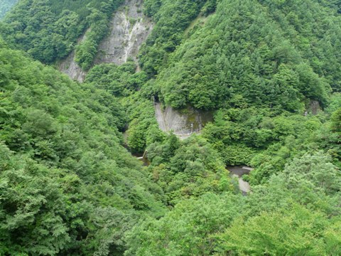 やっぱし、緑が生い茂っていると景色が全然違いますよね!? 最後まで人が住んでいた丹袖寮とか、外部から殆ど見えなくなっちゃいますし!! こんな状態ですから、特に新しい発見を期待せずに走っている自分。 とは言え・・・ トレーニングのため? スタンディング・ポジションで走っているので視界は物凄く良かったりするんですよ! で! って言うかさぁ! 自分。 そのうちに絶対に事故起こすかもしれないから気を付けようよ!!(願) ちゃんと前見て走っていないと絶対に危ないよ!!(困) 普段は気にせずにスルーしちゃっている崖下の施設。 自分は勝手に発電施設と思っていたんですけどね! その施設を見ながら走っていたらですね・・・ って言うか、本当に危ないですから良い子の皆さんは絶対に脇見運転は辞めましょうね!(願) え・・・ って言うか、見えちゃったんですよ!(叫) アレが! って言うか、木の陰から少し見えてるだけなのに気付いちゃったんですよアレに! って言うか、アソコに索道通ってね!?(涎) 次回。 怒涛の展開??